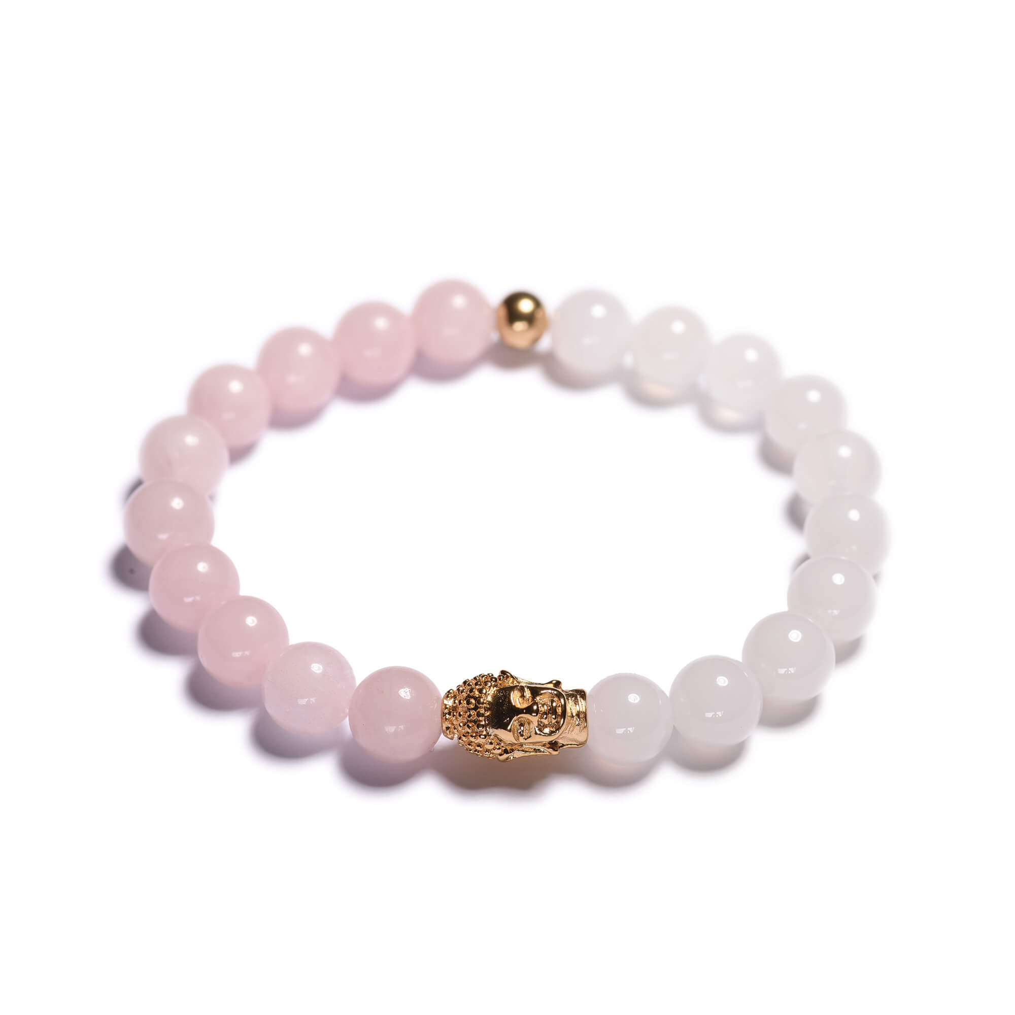 Romantický náramok z korálikov z ruženína a mliečneho achátu ako by práve skĺzol zo zápästia éterickej víly. Jeho precízne prevedenie ho predurčuje na nosenie na zápästie všetkých žien, ktoré dávajú rady najavo svoju ženskosť. Budhistický prívesok pomáha s harmóniou duše aj tela a dáva najavo, že jeho nositeľka je pozitívne naladená osobnosť. Náramok sa bude hodiť každému dievčaťu i žene a podčiarkne jej krásu, eleganciu a ženskú ladnosť.