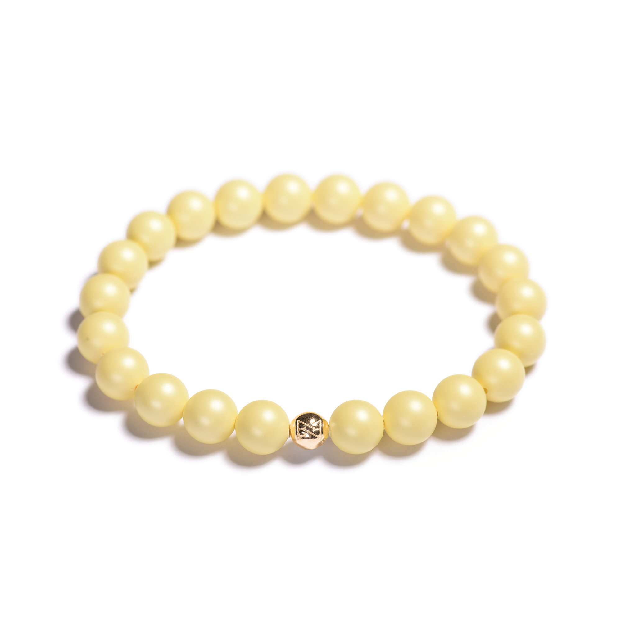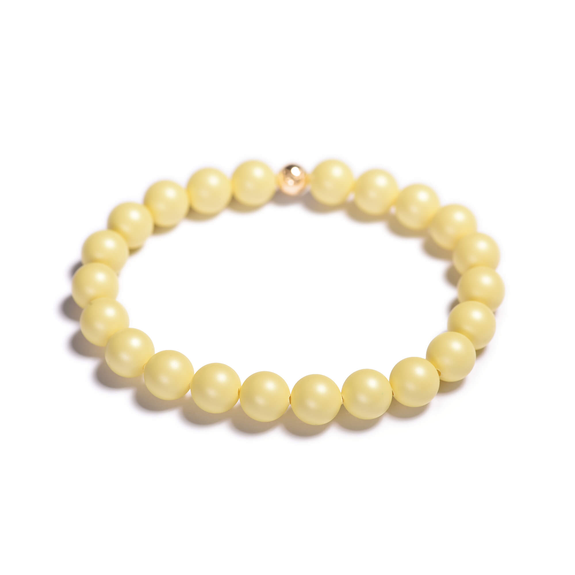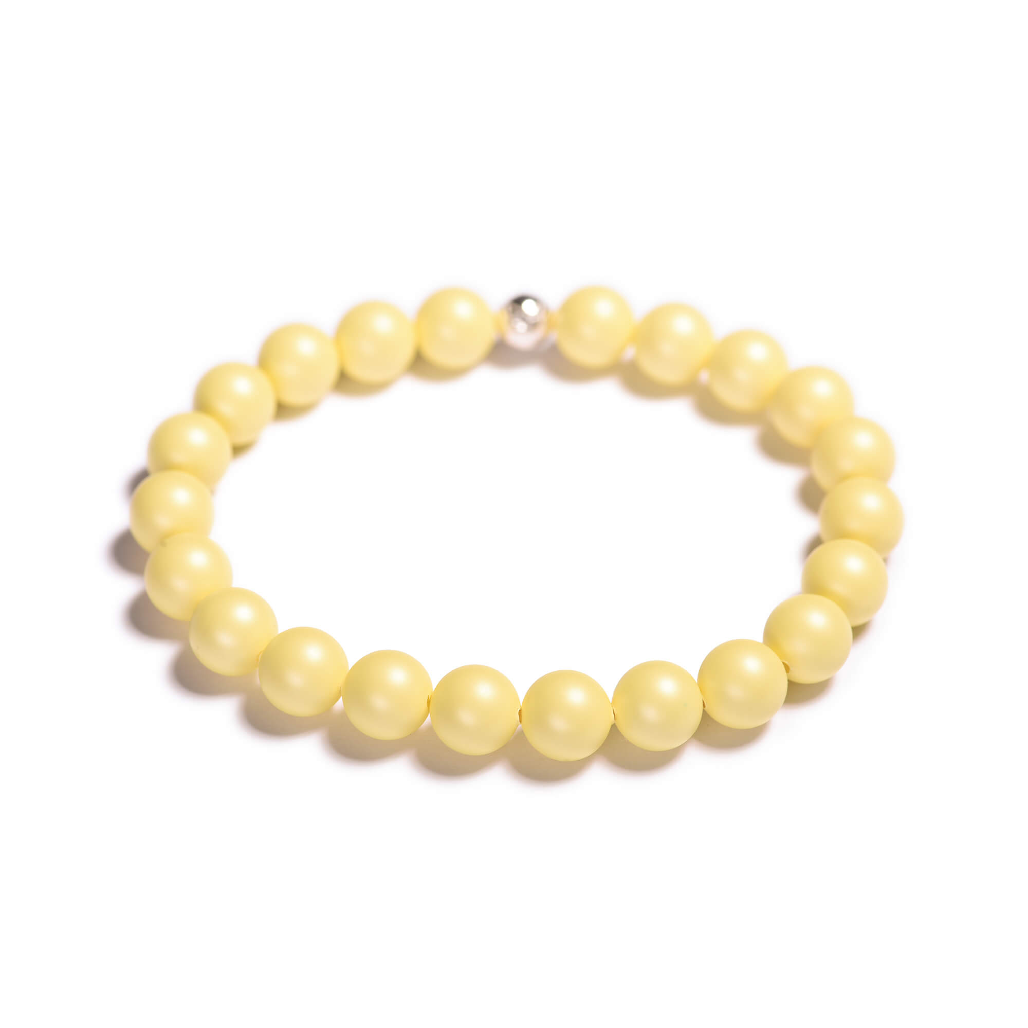 Teplá, jasná žltá pôsobí povzbudivo a slobodne, a preto sme ju vybrali do tohto dámskeho náramku. Mimo iného je tento odtieň, light yellow, fashion farbou pre jar 2018 – my už však teraz vieme, že bude trendy aj rad ďalších mesiacov. Náramok zo Swarovského perál vo sviežom žltom odtieni padne ako uliaty všetkým ženám, ktoré milujú pastelové farby a neboja sa vystúpiť zo šede okolia.