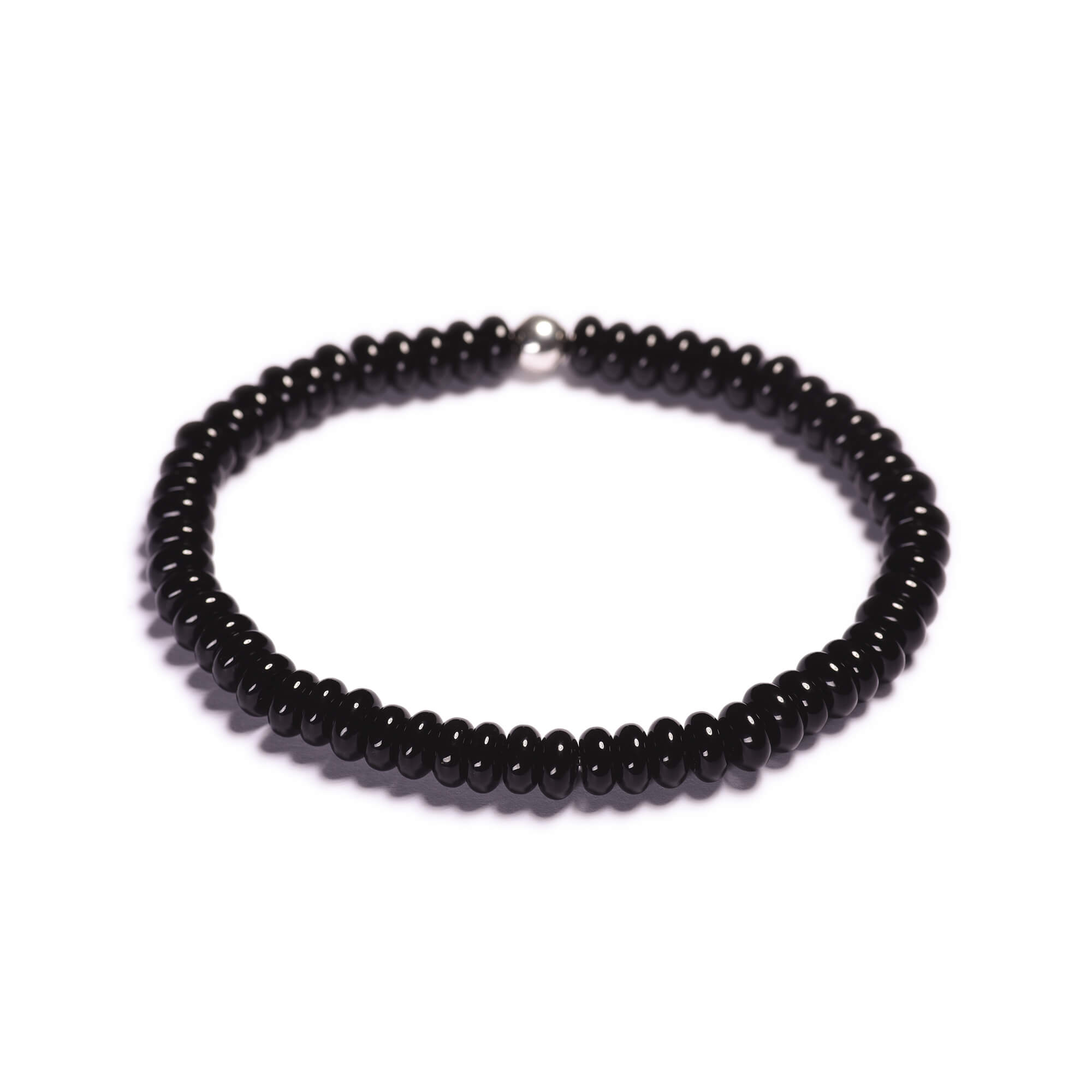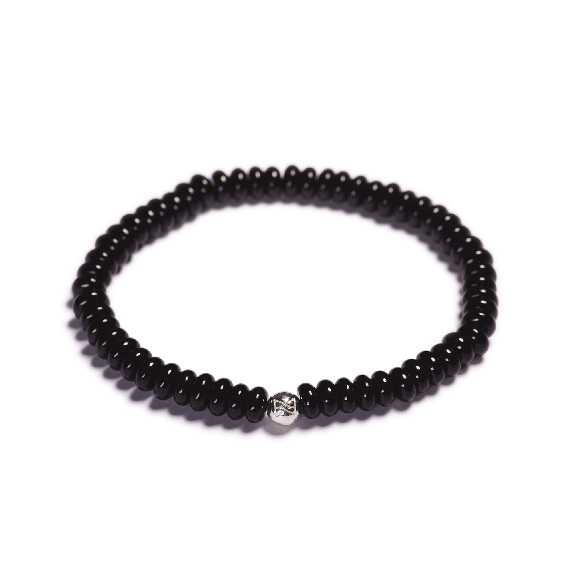 Dokonalosť tohto náramku sa skrýva v precíznej jednote všetkých použitých korálikov. Nenájdete medzi nimi jediný rozdiel, všetky oslňujú dokonalým splošteným tvarom a čiernočiernym lesklým prevedením. Náramok je tak ideálnou voľbou pre každého muža, ktorý dáva prednosť minimalistickej dokonalosti a dôkladne si vyberá, čo bude nosiť.