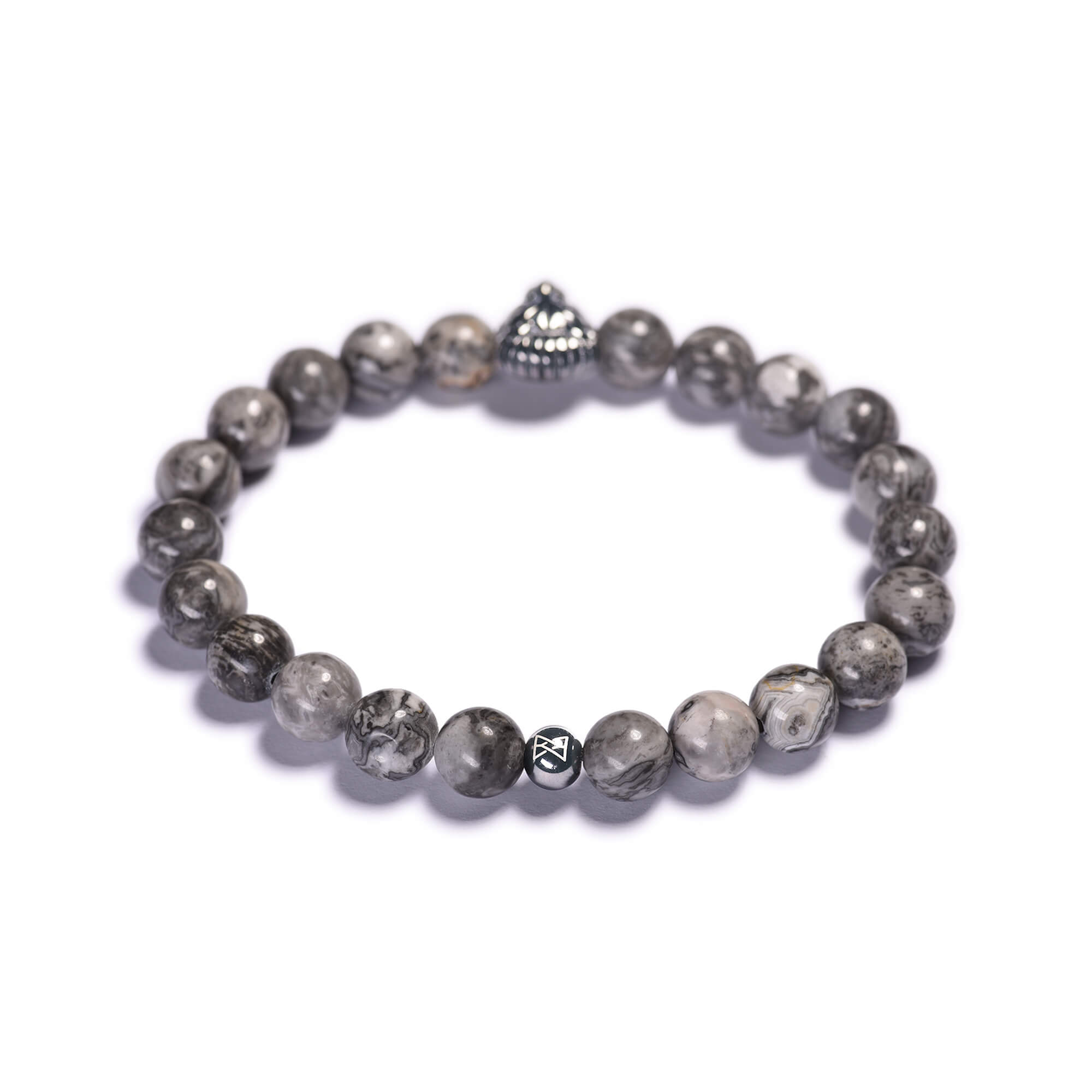 S pánskym náramkom z jaspisu, ktorý dopĺňa levia hlava, budete jednoznačne na prvý pohľad kráľom svojej vlastnej džungle. Náramok zo šedých jaspisových korálikov patrí na zápästie sebavedomých mužov, ktorí sa neboja povedať si o to, čo chcú. Skvele im padne v kombinácii s úzko strihanou košeľou a vypasovanými nohavicami i k menej formálnejším modelom.