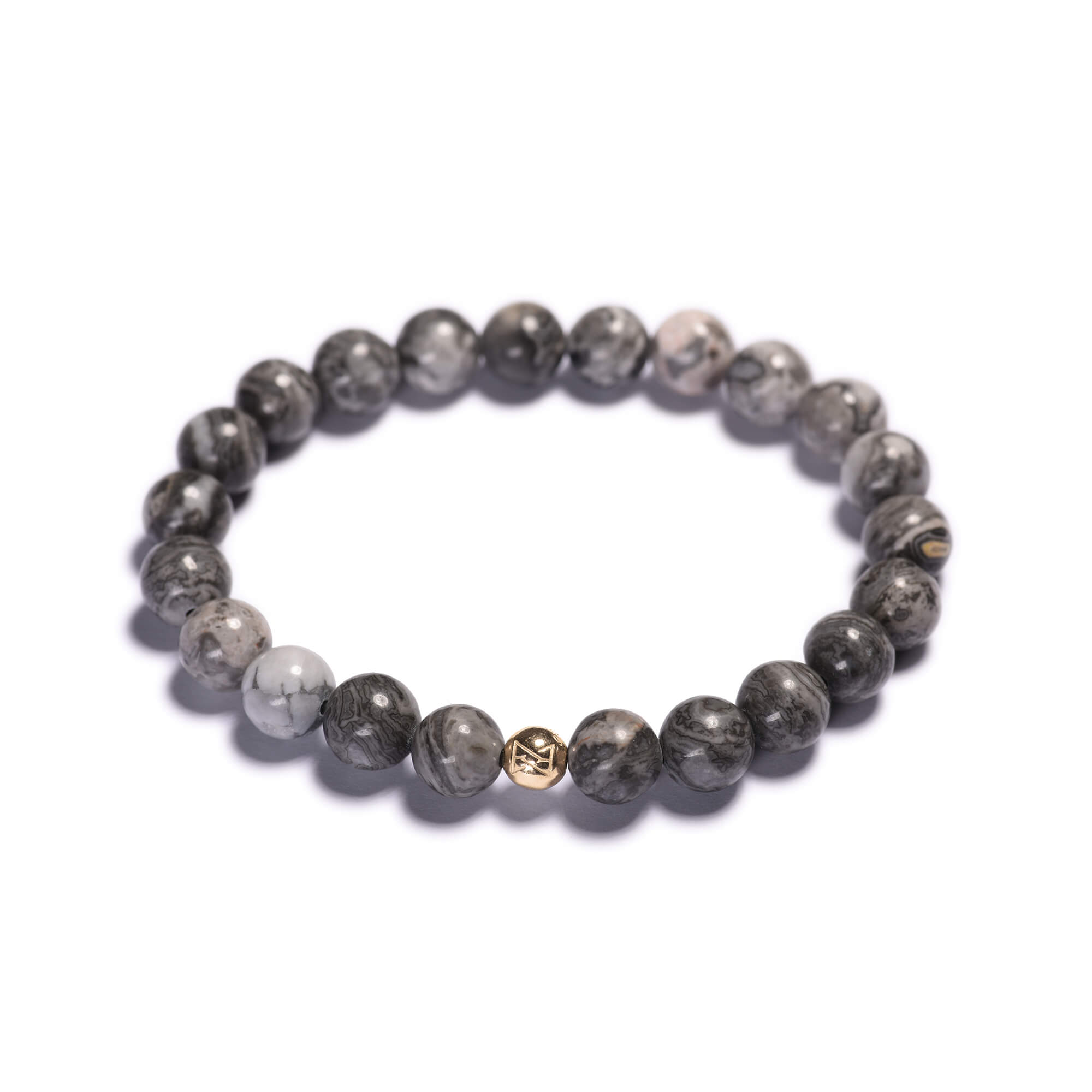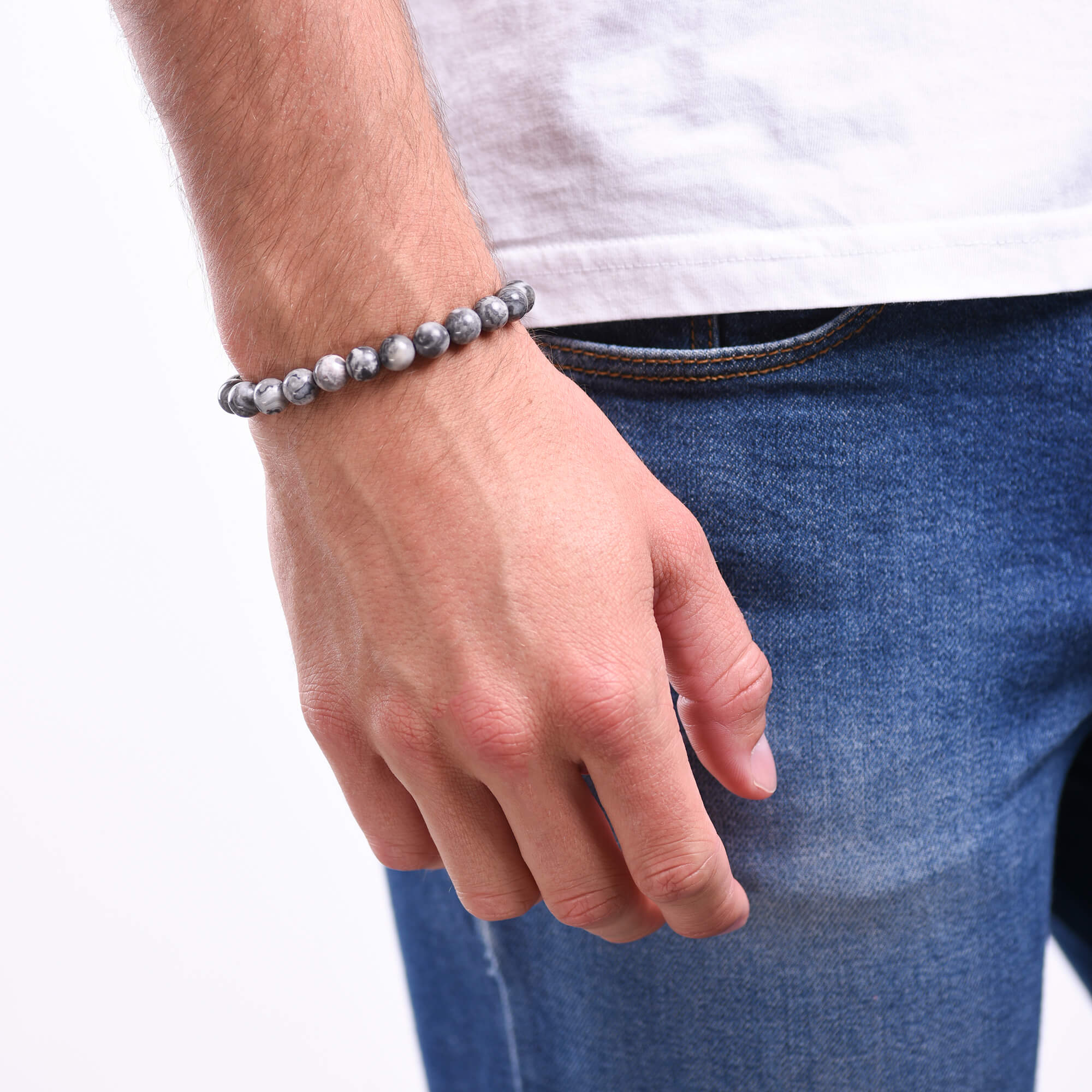 Dominuje na ňom síce šedá farba, no jednako splynúť so šeďou priemeru vás tento náramok rozhodne nenechá. Pánsky náramok sme pre vás vyrobili z krásnych jaspisových korálikov, ktoré symbolizujú šťastie a zdravie. Skvele sa budú hodiť všetkým mužom, ktorí majú radi originálne doplnky a neboja sa dať najavo svoj záujem o aktuálne módne trendy.