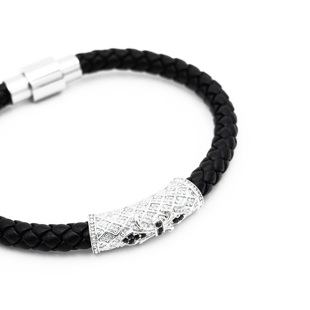 Pánsky kožený náramok Lavaliere Jednoduchosť a prepych bieleho zlata