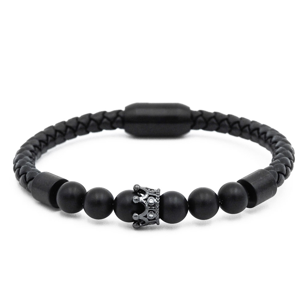 Pánsky kožený náramok Lavaliere Temná koruna